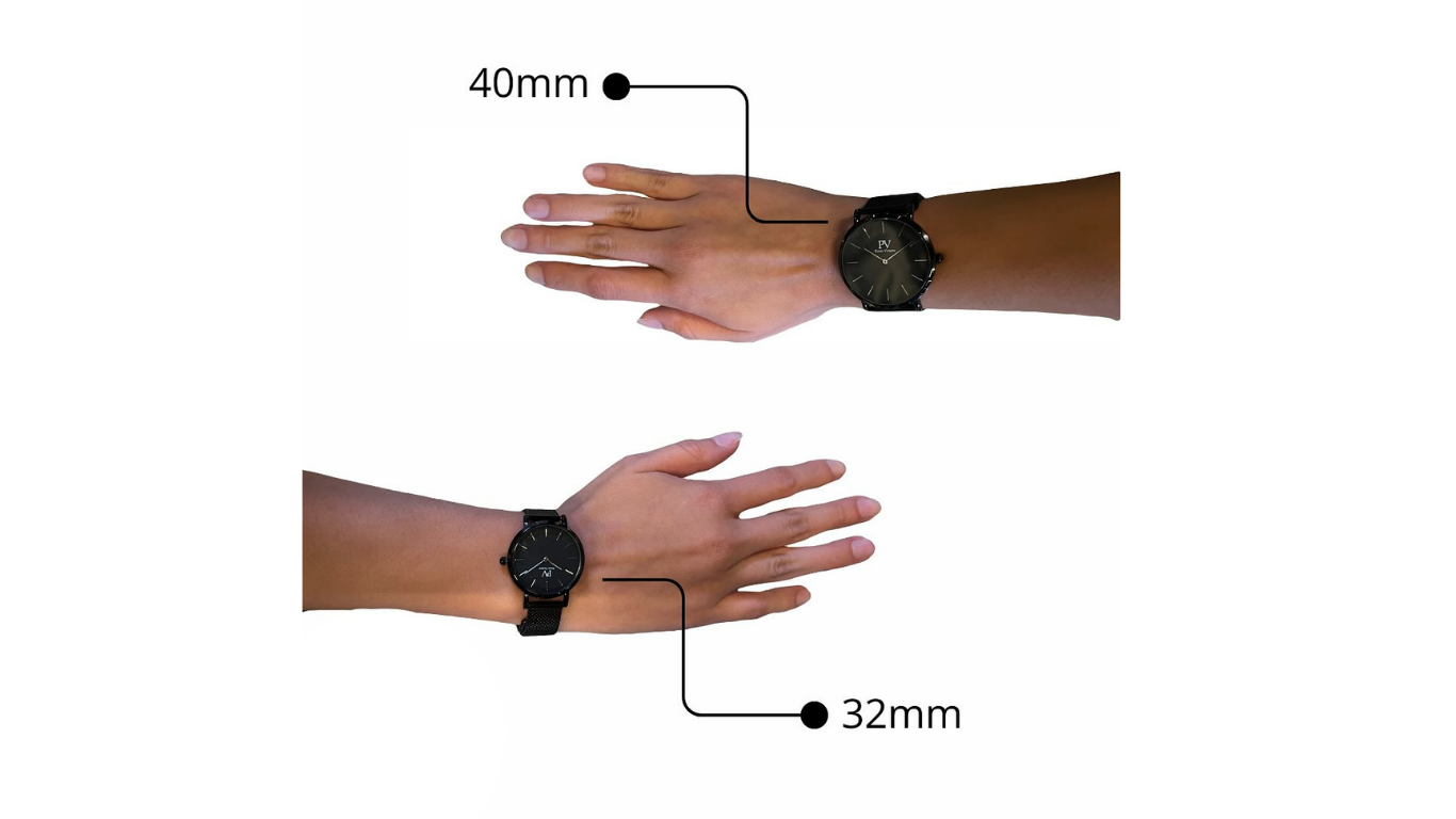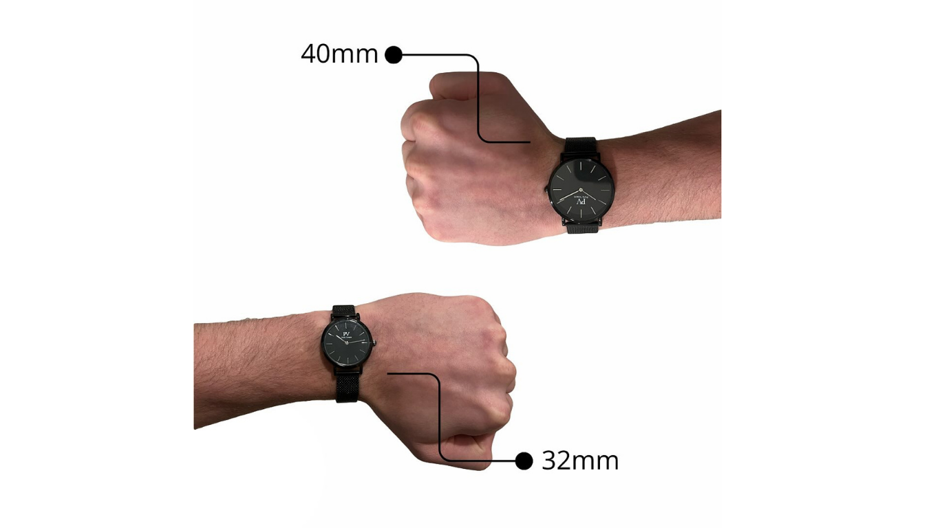 Si prefieres un reloj con una esfera más grande, te recomendamos 40 mm. Si prefieres un reloj con una esfera más pequeña, te recomendamos el de 32 mm.